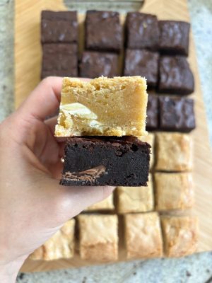 *Cooking time – For a very fudgy brownie take them out the oven after 25 minutes, ensuring you leave them in the fridge overnight to set to prevent them from falling apart when you cut them. For a more cakey brownie bake for 35 minutes.