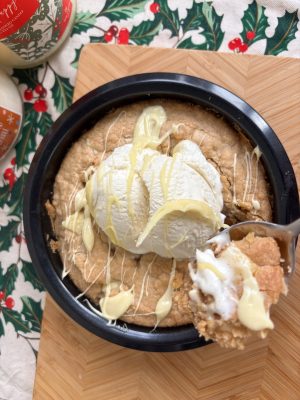 My gingerbread and white chocolate cookie skillet is the perfect festive dessert, combining a warm gooey gingerbread flavoured cookie dough with dairy free white chocolate. It’s a delicious sharing dessert, ideal topped with dairy free ice cream. If you do make this recipe I’d love to see, don’t forget to tag me in your photos over on social media.
