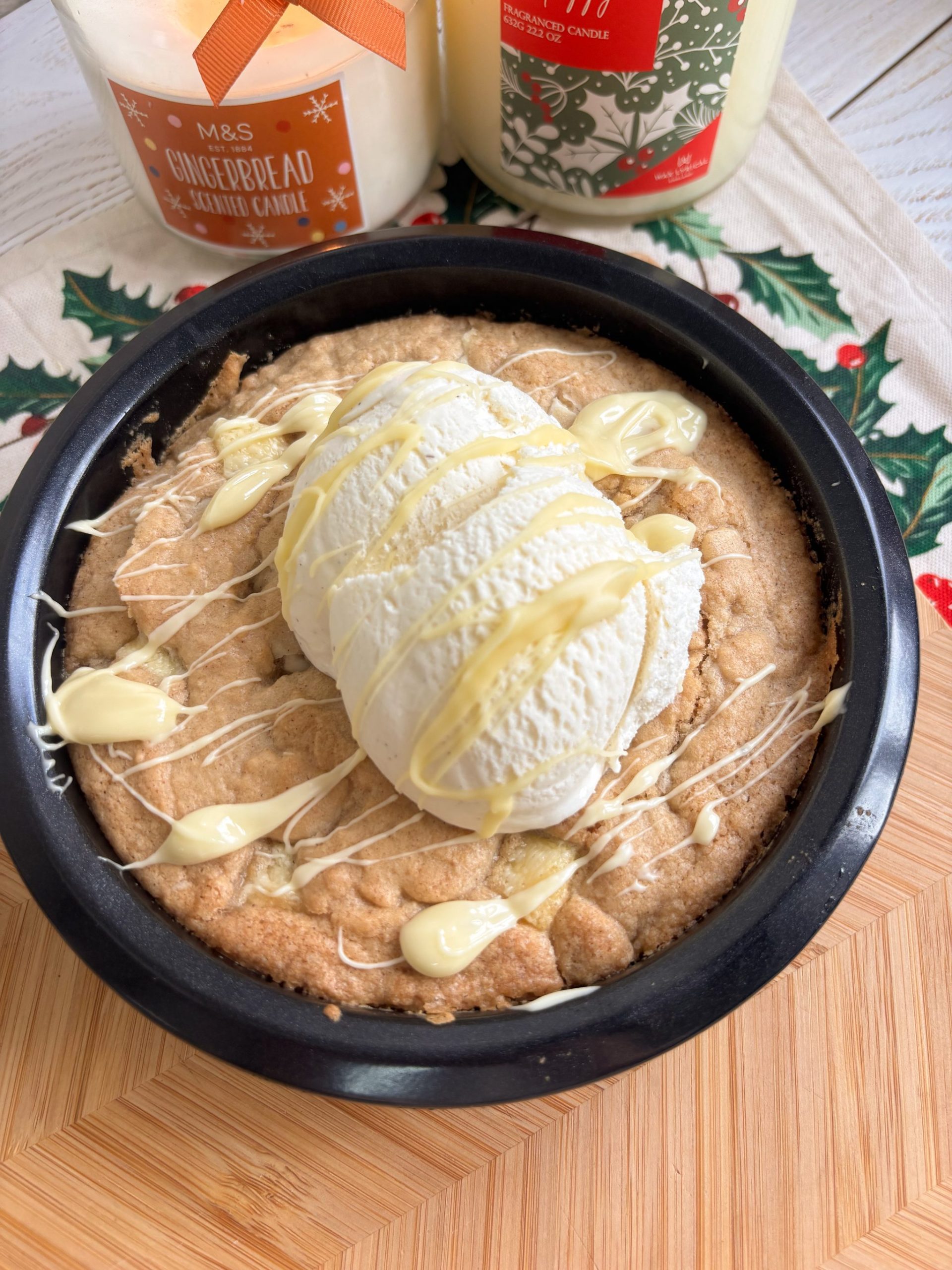 My gingerbread and white chocolate cookie skillet is the perfect festive dessert, combining a warm gooey gingerbread flavoured cookie dough…